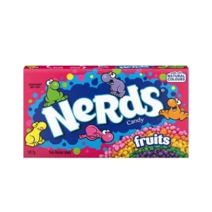 Ecco una vera delizia per i veri fan dei prodotti Nerd. I Nerds Fruits sono mini caramelle croccanti e acide famose per le loro dimensioni ridotte, capaci però di sprigionare un gusto e una dolcezza irresistibili. In questa versione, una selezione di gusti fruttati. Non lasciarti scappare questa prelibatezza! Da oggi con coloranti NATURALI. Made for Eu in the USA